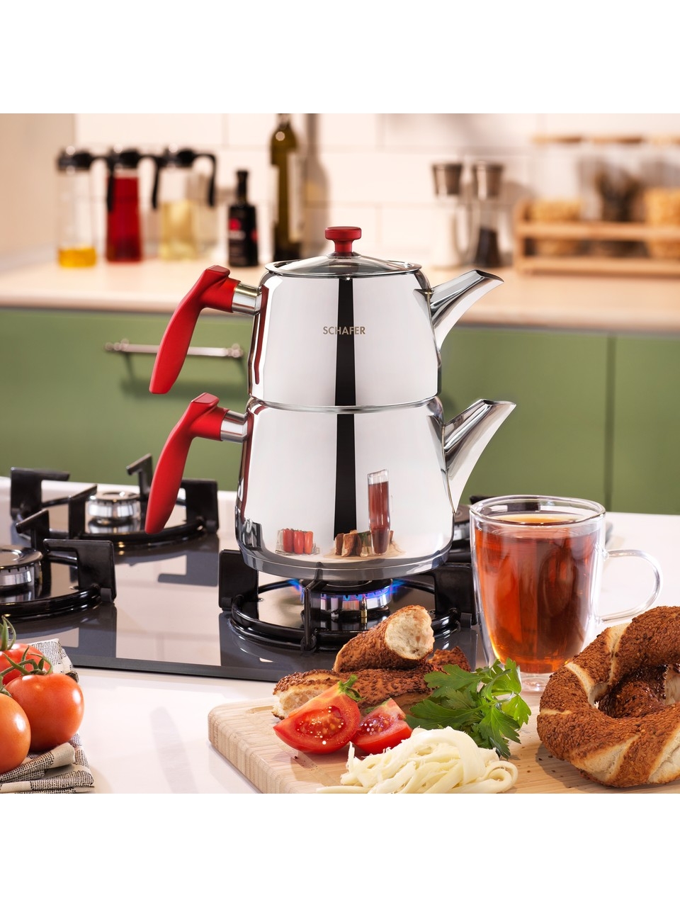 Schafer Rot Orta Boy Çaydanlık Takımı 3 Prç. Kırmızı